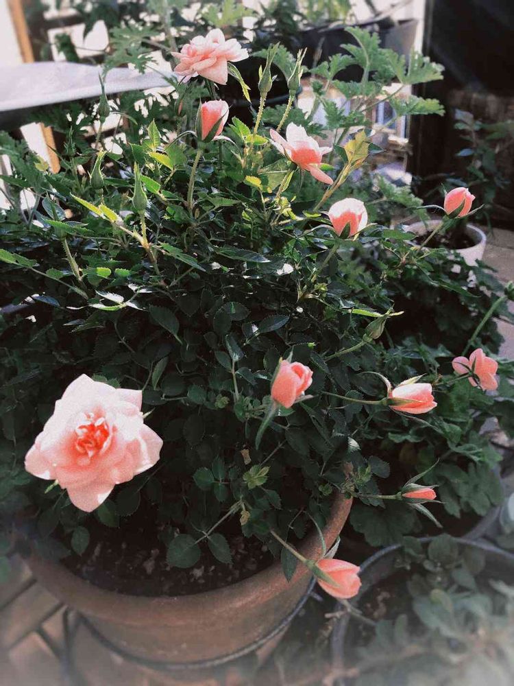 バルコニー/ベランダ,ミニバラ ピーチ姫,ミニバラ鉢植えの投稿画像