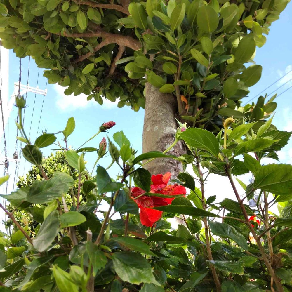 街路樹にハイビスカスたなんて、、、