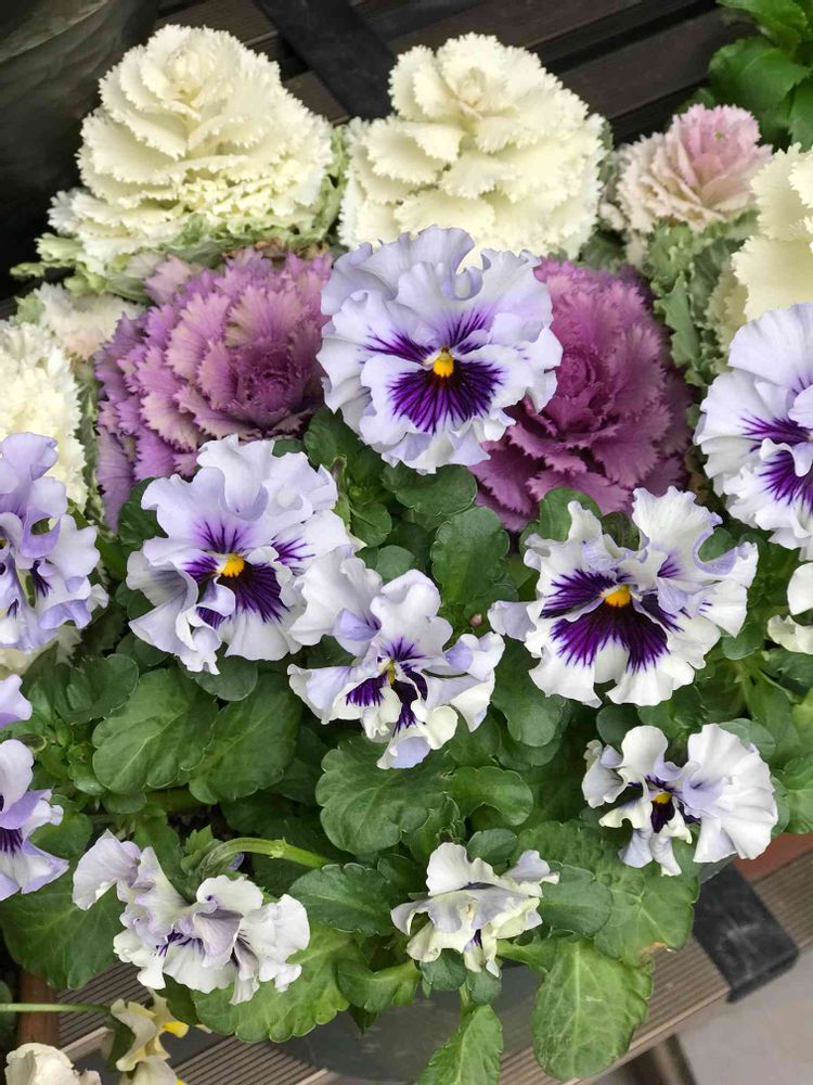 パンジーはたくさん咲いていい感じ😊🎶葉牡丹は少し伸びてきたけどまだもう少しこのまま飾っておきます😉💕