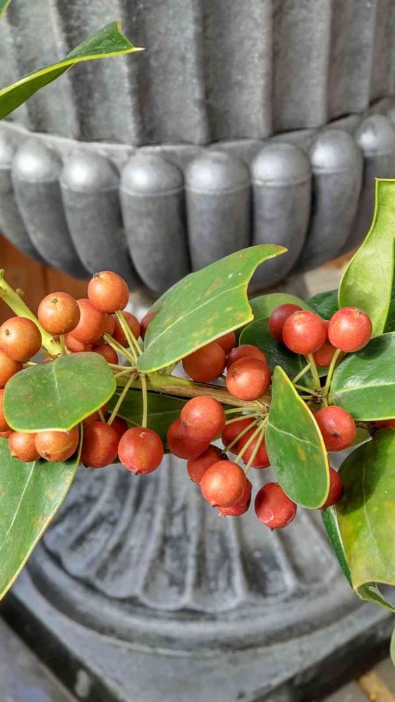 花友さんのを見て育てたく春に手に入れたクリスマスホーリーが赤くなってきました~😍💕