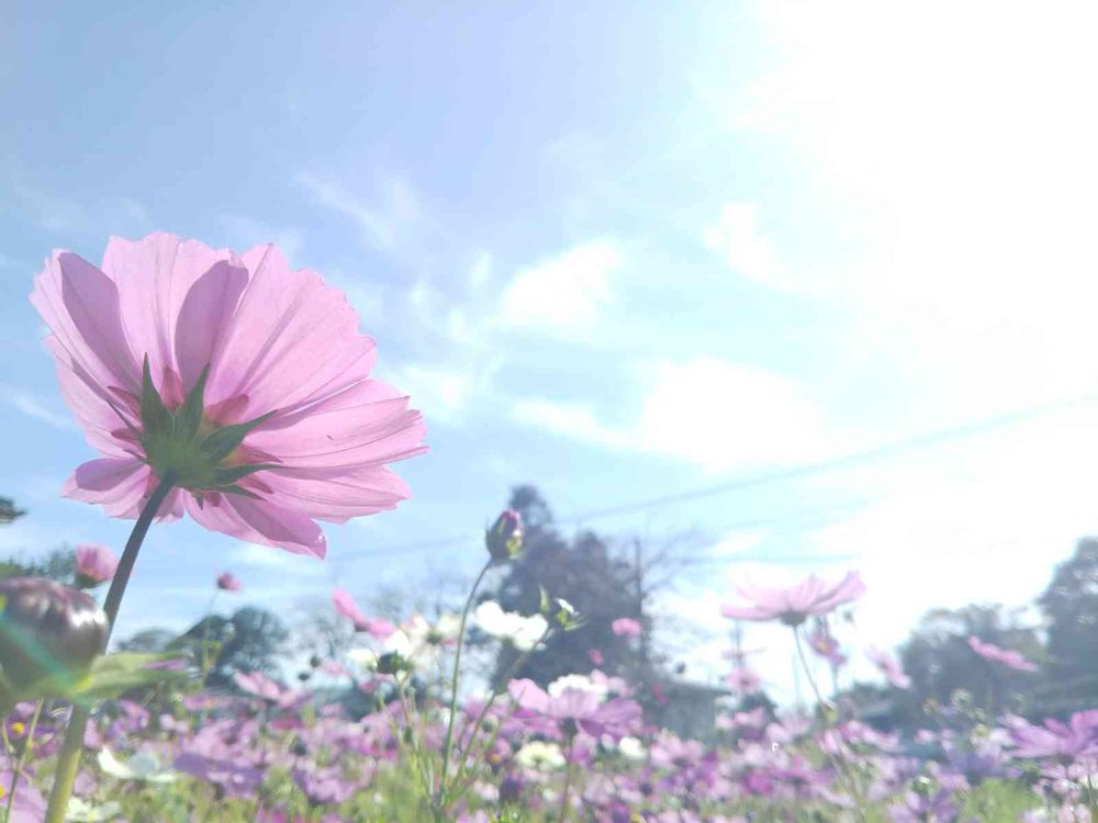 りんかさんのお出かけ先,ピンクの花,青空の投稿画像