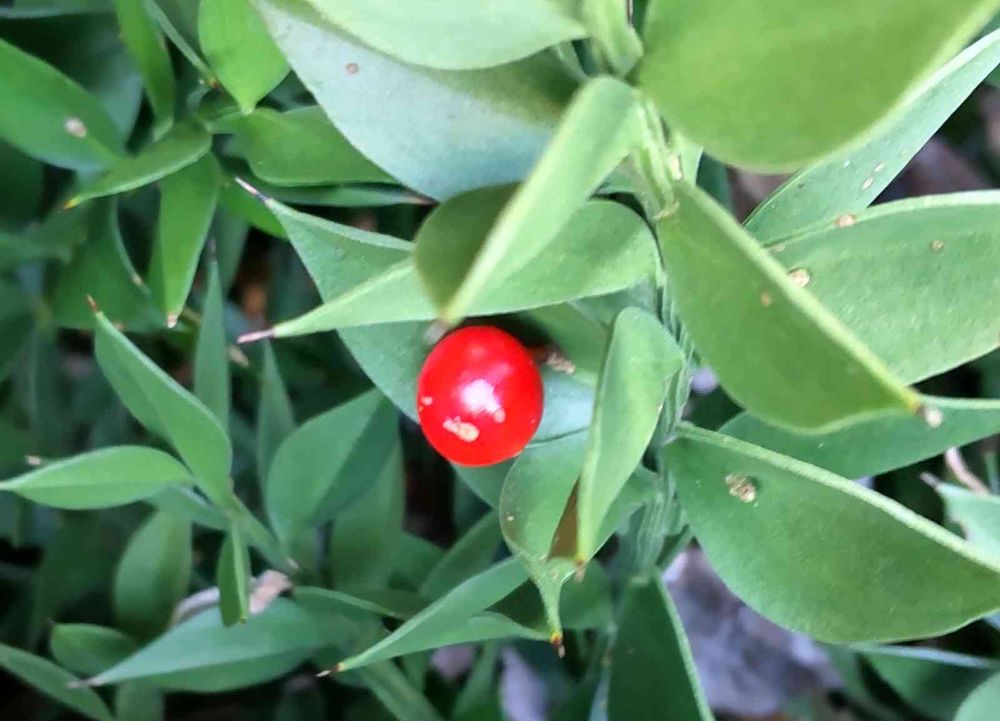 森林公園側の花壇の縁に植えられているナギイカダには、赤い実が少しだけ残っていました。