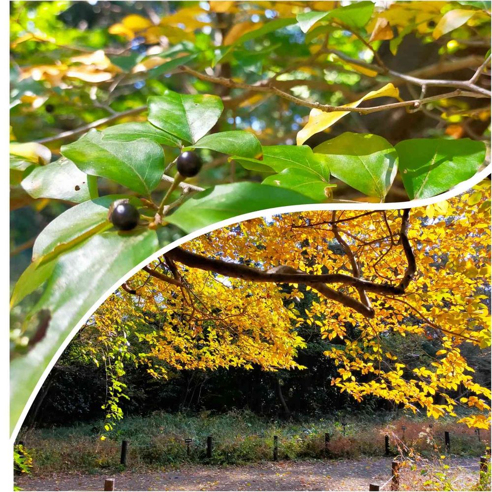 ☝11/13 黄色の葉もありつつまだ緑の葉も🟡🟢⚫(←黒い実も)