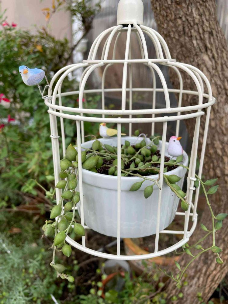 鳥籠にグリーンネックレスをプチプチ挿し芽🟢🟢🟢