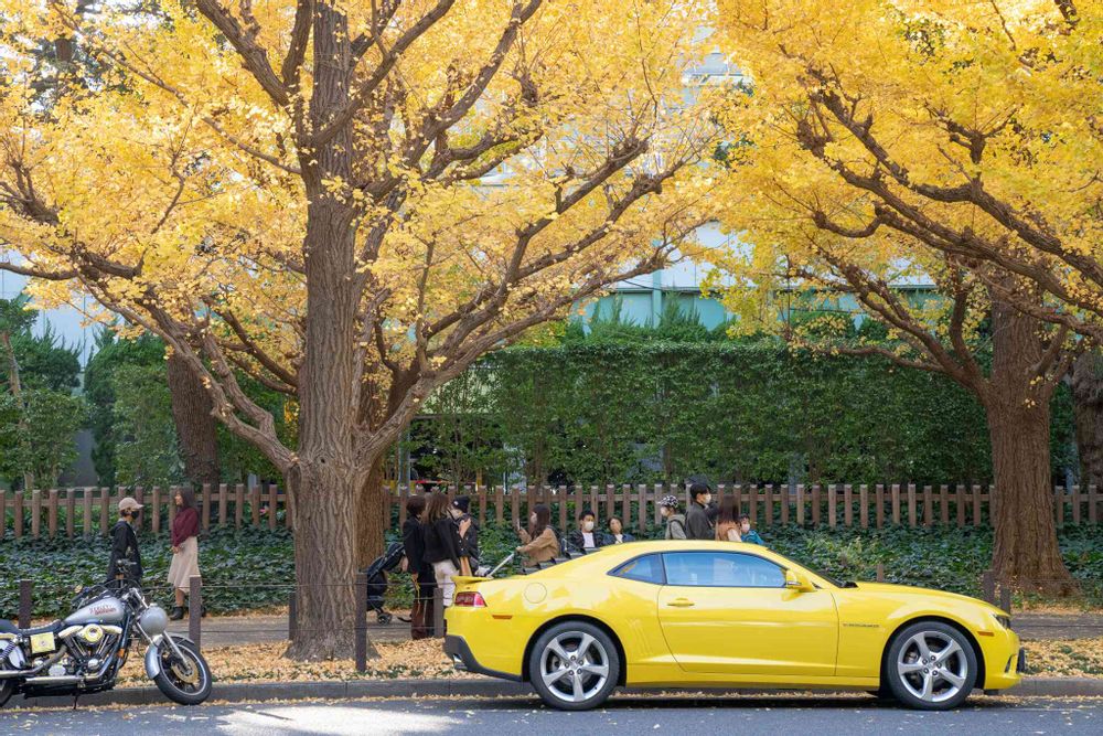 明治神宮のエリアはかなり広く、これは外れのほうで、150mほどの一般道のイチョウ並木なんです。確かにお洒落なかたが多く、この時期、凄い人で賑わいます。
