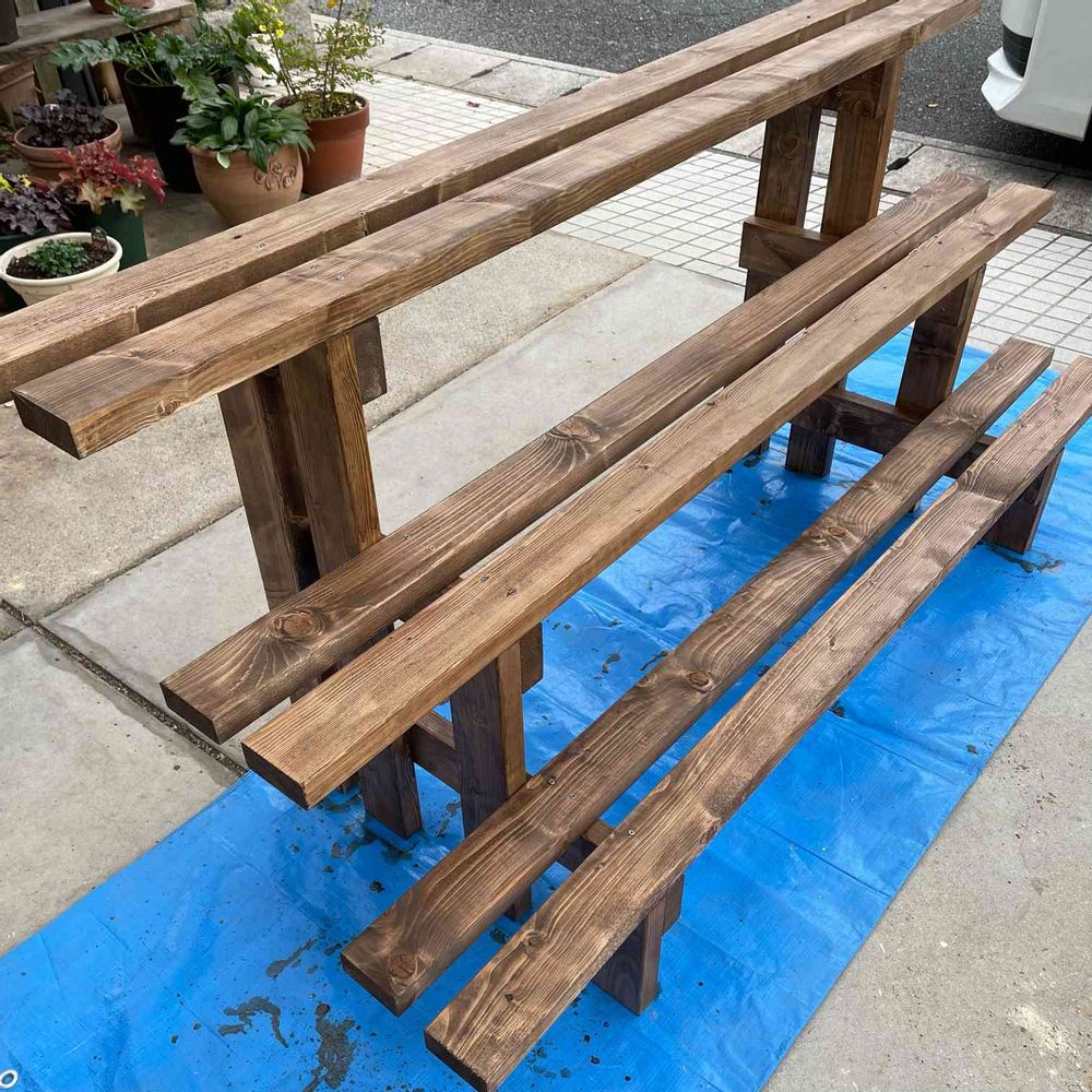 カトちゃんねるさんの動画の中にある通りにカットして木材を買ってくれば、あとは電動ドライバーだけで組み立てられます。私は適当に高さだけ合わせながら、ガタつかないようにだけ気をつけて組んだだけです。