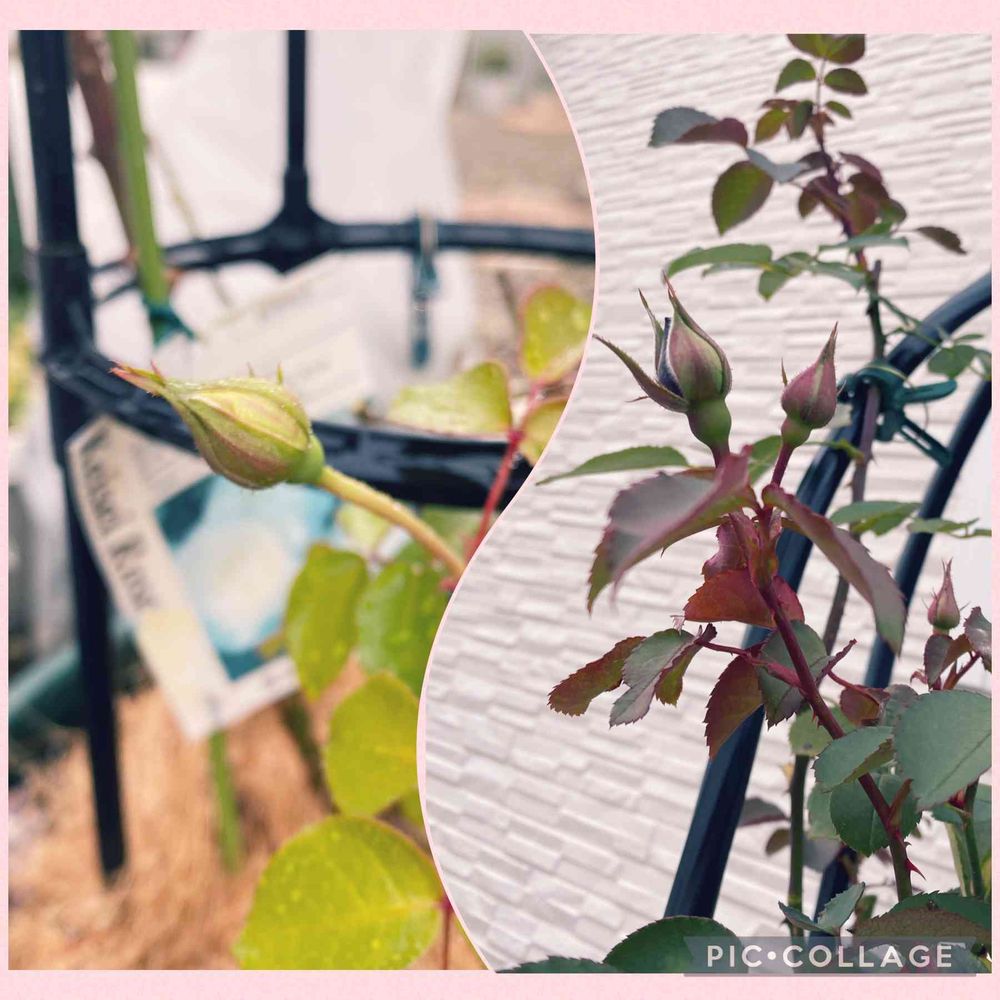 ボレロさんとオデュッセイア様❣️蕾がずーっとあるんだけど…寒いから変化なし…咲くんだろうか…南側に移動したいお花がいっぱいあるんだけど、南側は狭いのでバラとビニール温室二つ置いただけで満杯です😩