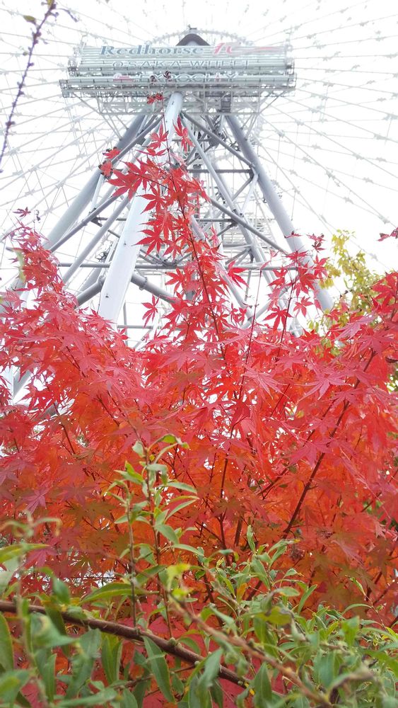 大観覧車の前の「モミジ」もお昼に見ると紅葉が鮮やかです。🎡♥️🌿😊🌞