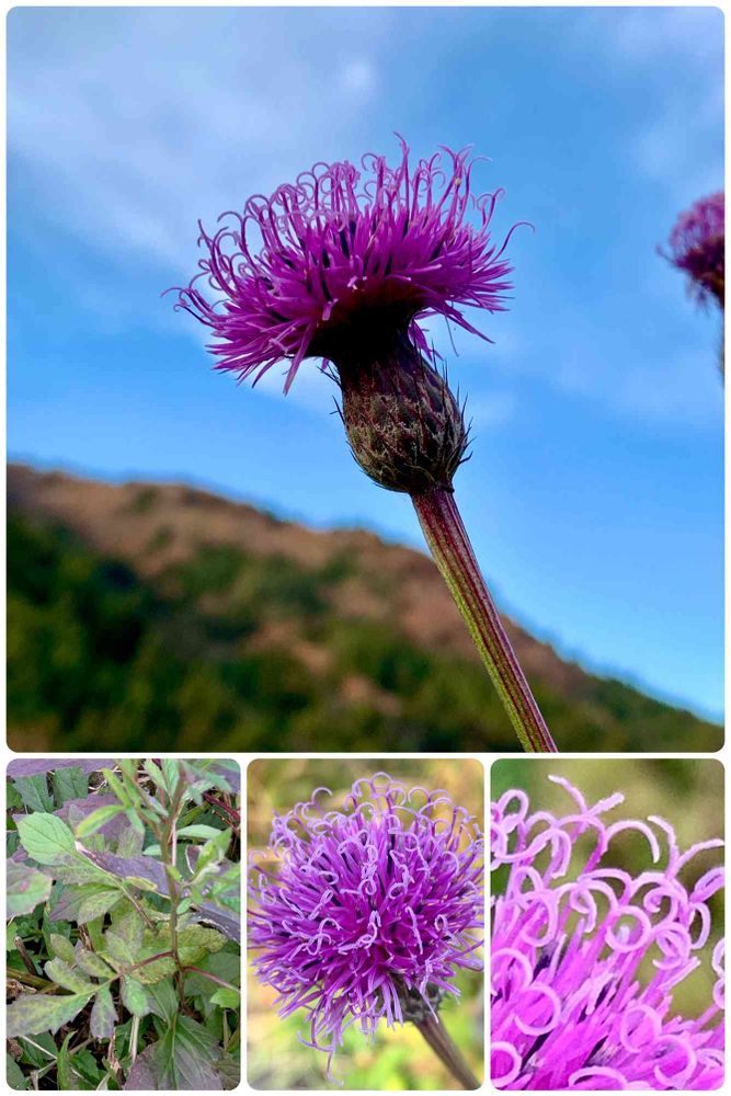 花は一見アザミのように見えるが花柱の先が2分して反曲する。下部の葉は大きく羽状に全裂しアザミのような刺はない…との説明でした。アザミと思って見た花ですが、葉っぱが😳おや、違う!と気付きました。
