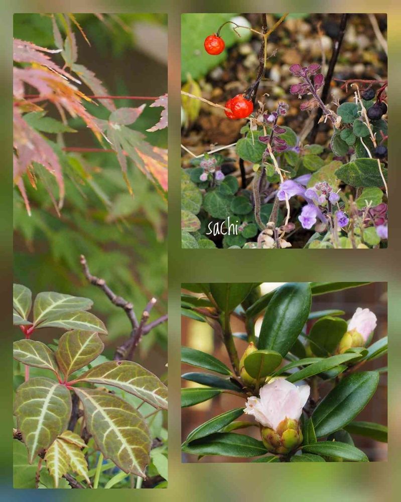 モミジ、アメリカヅタ、ヒヨドリジョウゴ、タツナミソウ、西洋シャクナゲ💮☘️🍁🍀
