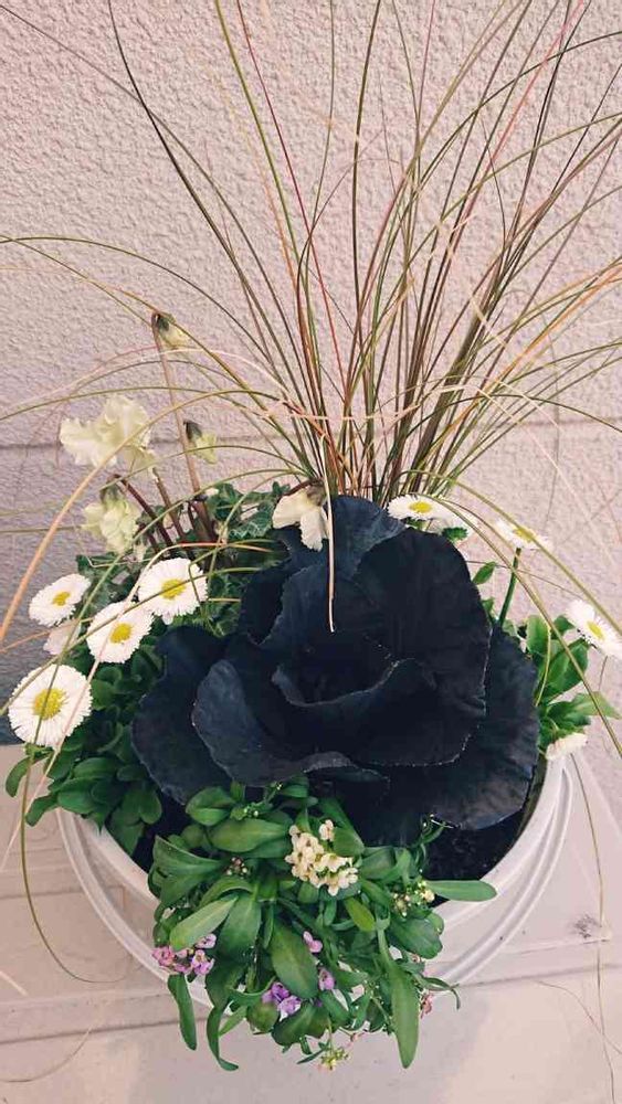 今園芸店へ行くと色も形もいろいろな葉牡丹があってときめいてしまいました😅真ん中も真っ黒なのは初めてお迎えしました💕