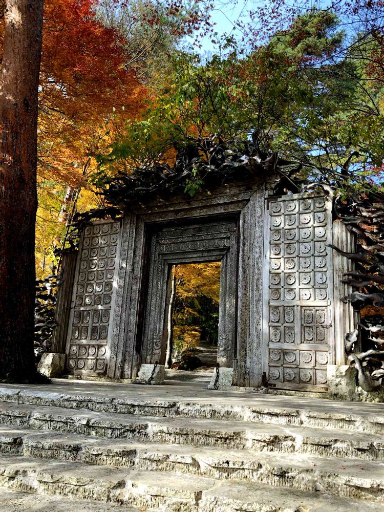開いているところが 額縁のようで奥の紅葉がはまってますね🤗