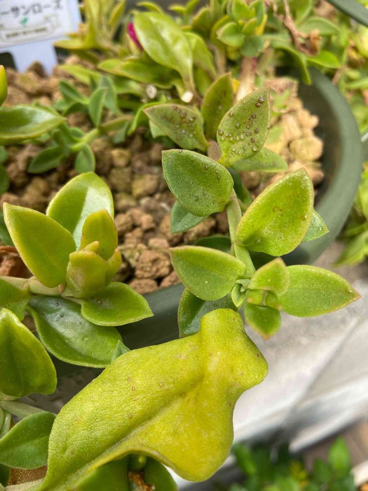 ベビーサンローズさんに赤いような斑点と水疱のようなプクッとしたふくらみが点在してる事に気付きました。