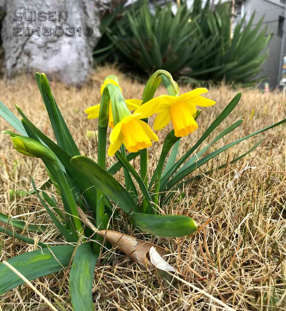 それに30センチくらい離れたとこにも、四輪ほどの団体さんが仲良く咲いてます。枯れた芝生とのコントラストもいい感じなんだなー😊