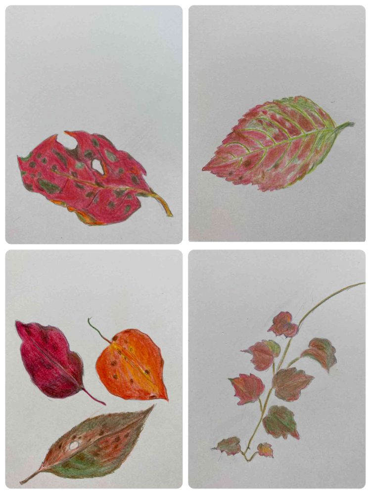 デスク,紅葉(こうよう),色鉛筆画の投稿画像