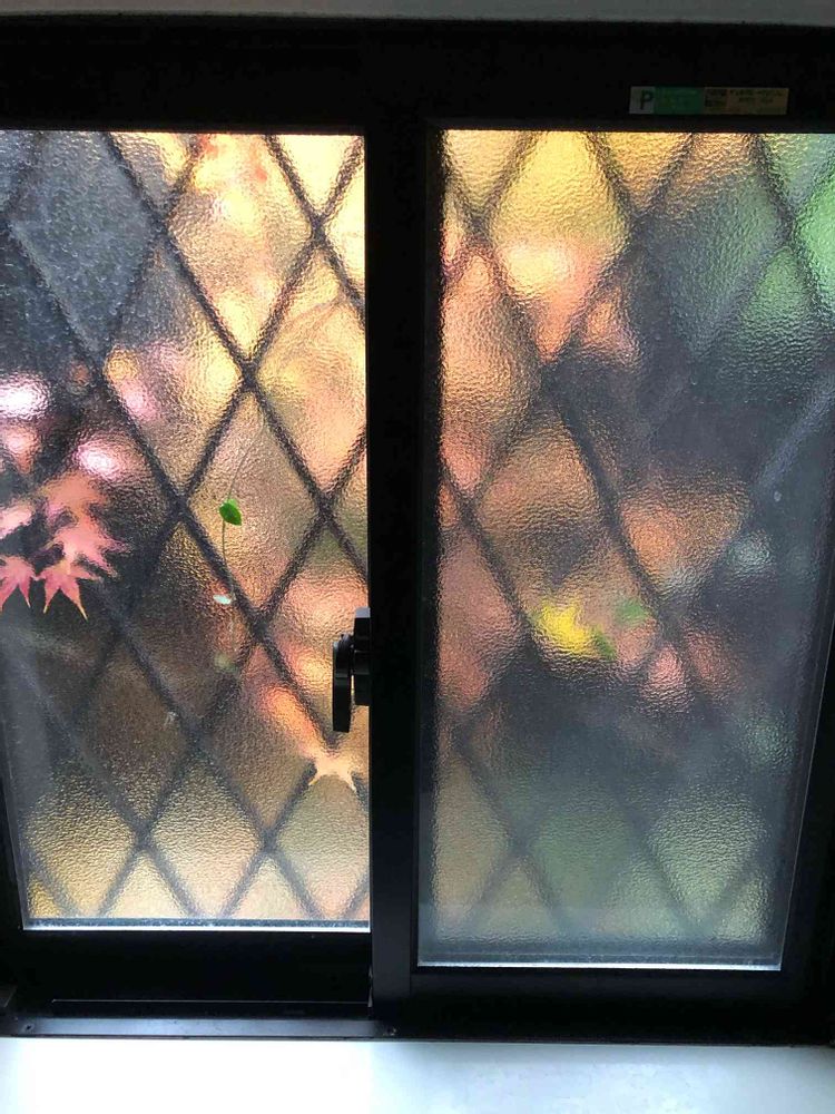 すりガラス越しの淡い色の紅葉がステンドグラスみたいで、とても綺麗ですね(*´∇`*)✨✨