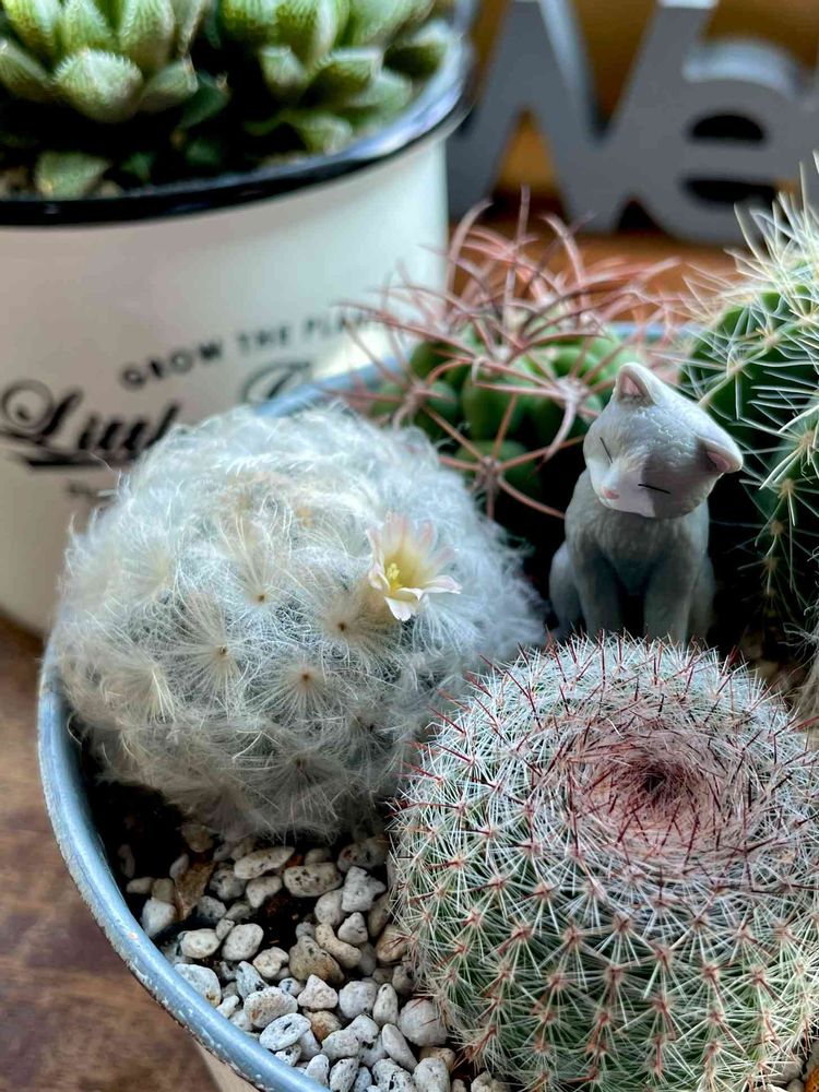 もけもけサボテンの白星さんにお花が咲きました🌼たった一輪でも、嬉しいな❀.(*´▽`*)❀.