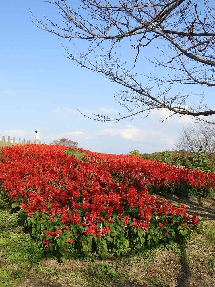 青空に向かって燃える様に咲き誇る綺麗な🏵️サルビア🏵️