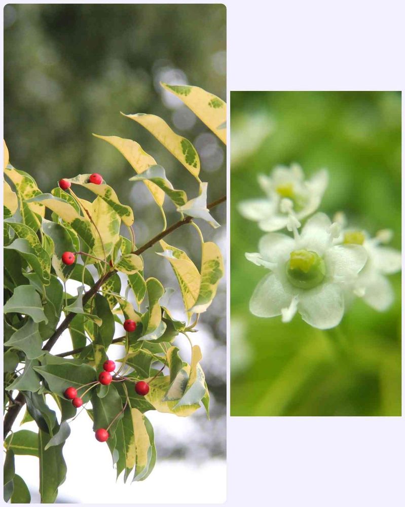 この木の全体は、ほとんど普通の緑色で、ここともう1ヵ所だけが斑入りになってました。