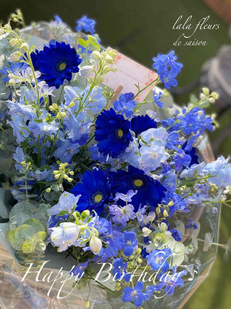 ララフルールさんのデルフィニウム,染めガーベラ,スプレーデルフィニウムの投稿画像