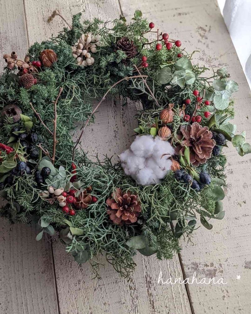 手作りをして、こんなにも嬉しいコメントを頂けてとっても幸せです😍励みになります!!ありがとうございます💕 Norikoさんもリース作られるのですね~♬花材選びから、どんなリースにしようか考える過程も楽しいですよね🤗私は今年はナチュラルな感じにしてみたのですが、気に入っています☺️Norikoさんもリース作り楽しんで下さいね~🥰💕