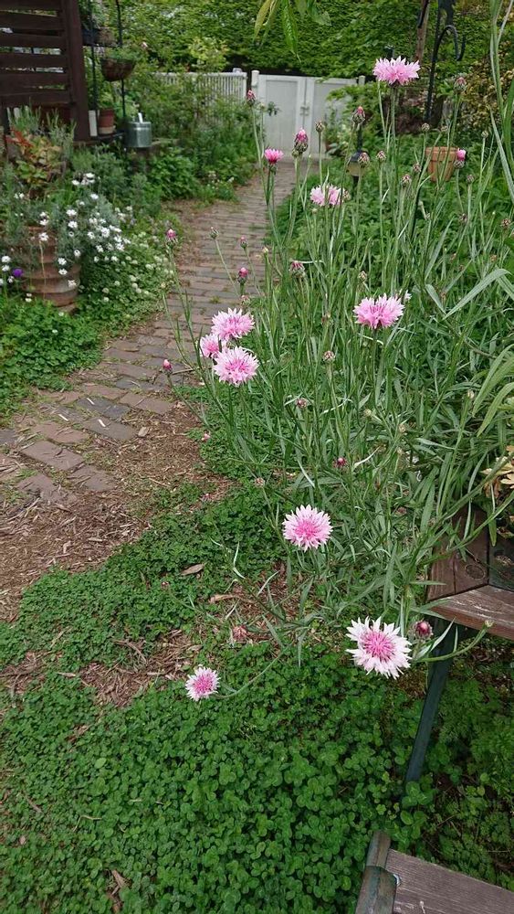 矢車菊(やぐるまぎく),庭の花,レンガのアプローチの投稿画像