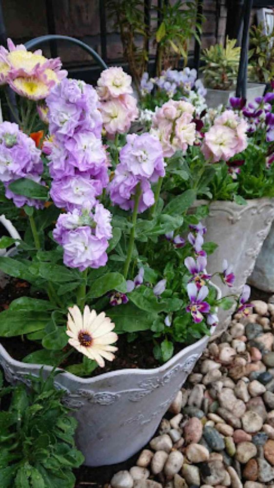 寄せ植え優しい雰囲気で作りました(*ˊᵕˋ*)੭ 🌸🎵♡