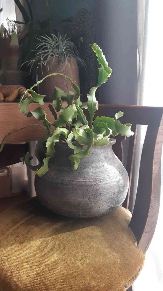 この壺⚱️みたいな鉢とレトロな椅子🪑が、すっごく素敵❣️✨✨😆