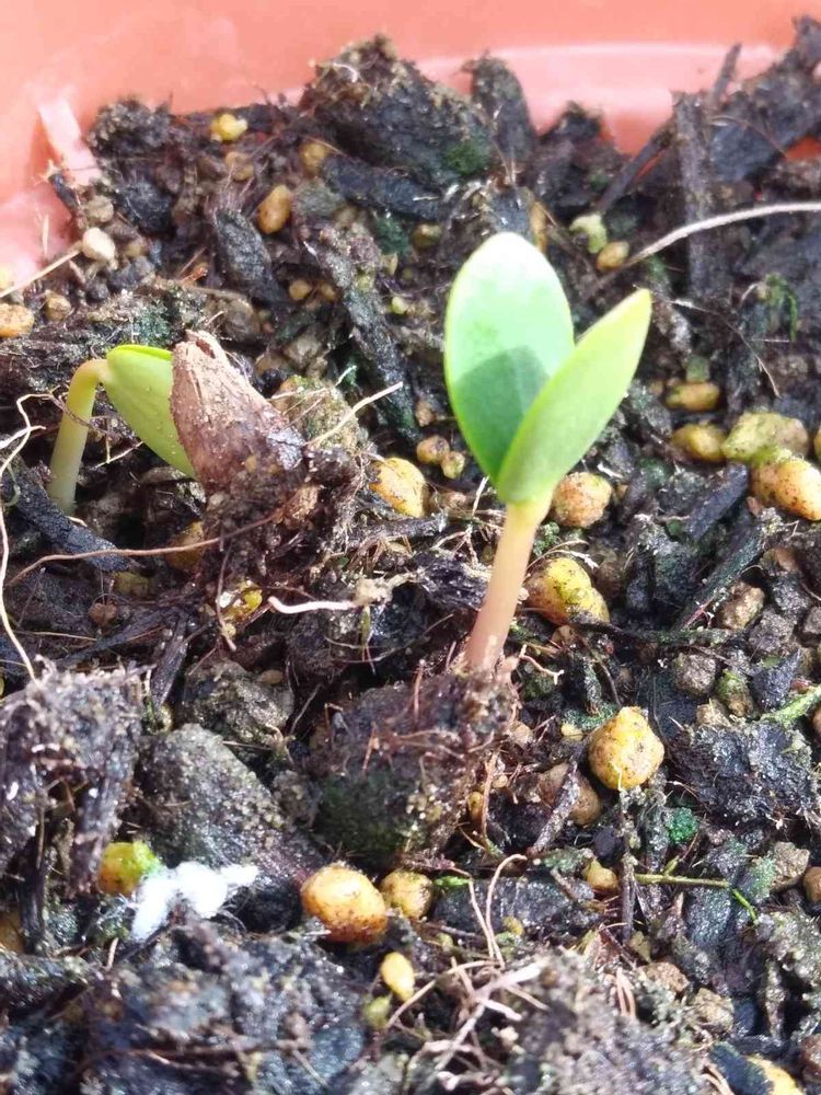 10月31日食べた林檎🍎の種(トキ)蒔いて見たら芽が出てきた❗😳交配種なんでどんなリンゴになるか❓😋