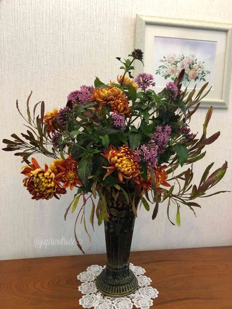 あり合わせとはいえ豪華でシックな晩秋のアレンジになりました♪