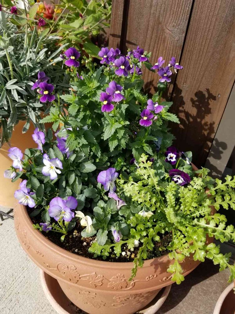 いやあ可愛い寄せ植え。紫💜も基本ブルー系ですもん、合わないはずないですよ(o^^o)♪