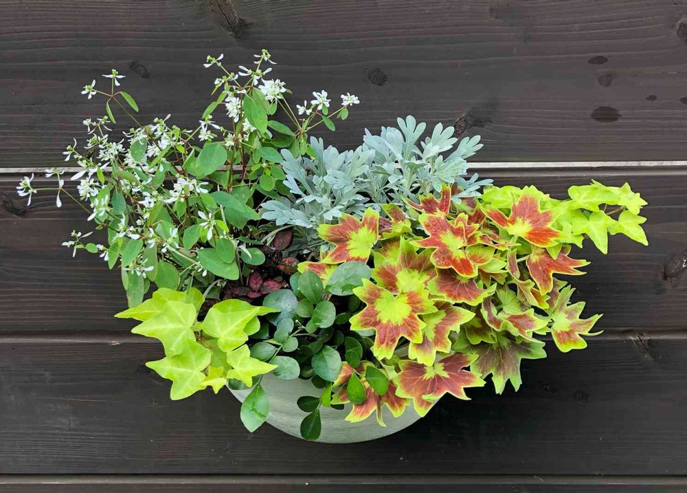 大きな寄せ植えに入りきらなかった葉っぱさん達で寄せ植えを作りました!