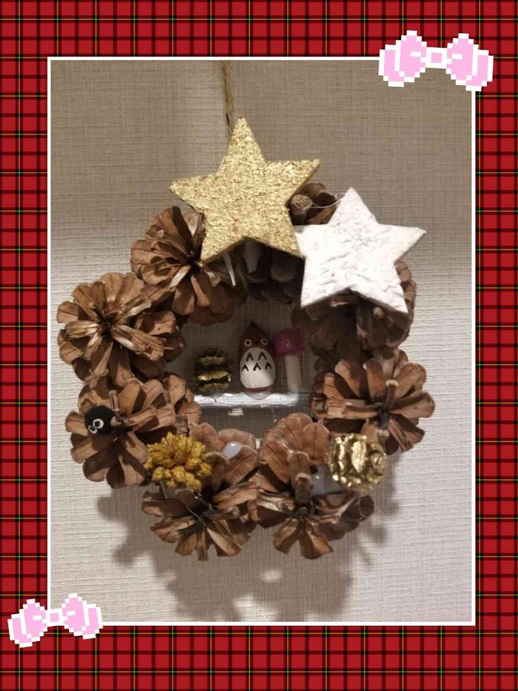 5才の孫娘がパパとママと仲良くリースを作りました。