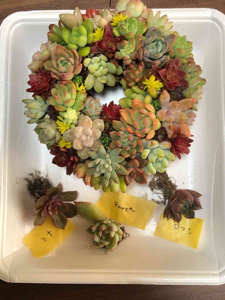 前に葉挿しが大きくなったらと約束して送ってくれたんだ😁そしたら、リース寄せ植えが入っていてビックリ‼️ん子😍