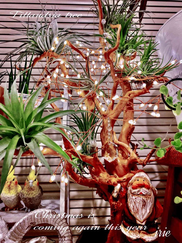 木も本物です。木にいつもチランジシアをのせてるんですけどそれにピカピカなやつを巻いてます🎄✨💡✨