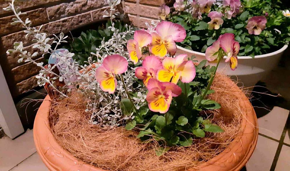 玄関,オレアリア リトルスモーキー,パンジー フローラルデイズ モーニングデューの投稿画像