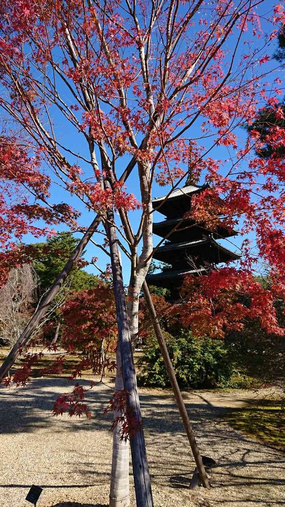 とにかく天気に恵まれたので、空の青さと赤いモミジ、五重塔でいい雰囲気の写真が撮れました✨🥰