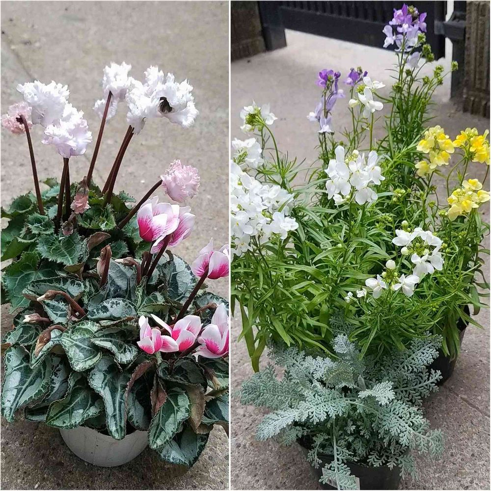 白のシクラメンフリフリで可愛い❗❤️❤️❤️❤️金魚草も色々な色があって良いですね❤️寄せ植え素敵です‼️✴️✴️✴️✴️🥰