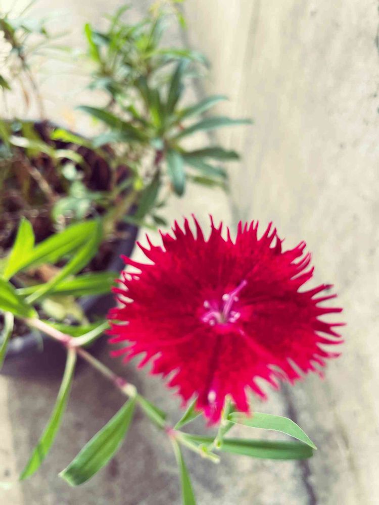 庭に一輪の深紅のナデシコ・・いいですね🤗