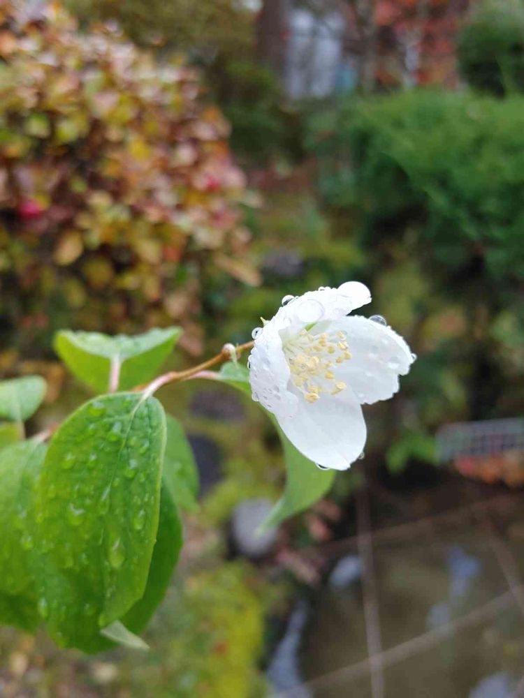 季節を間違えたのか、冷たい雨の中ウツギが咲いています。