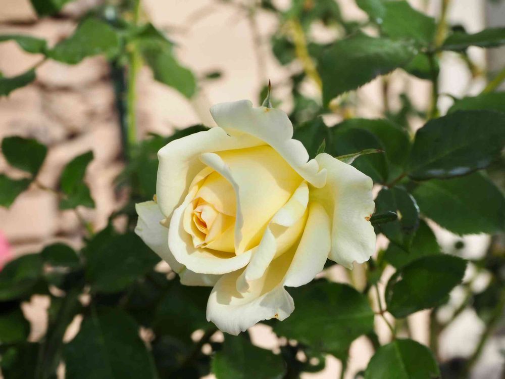 クリーム色ですが、綺麗な黄色がベースというか、私は、あまり見ないバラさんの色です。上品です〜