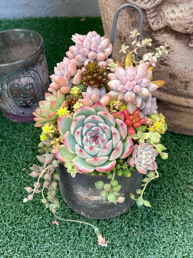 多肉植物 リメ缶寄せ