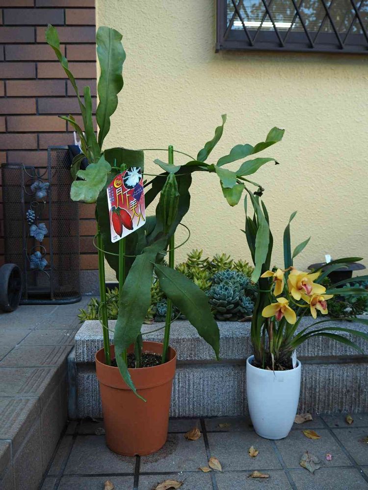隣は880円(処分品…何て悲しいコピーなんだ!生き物に『処分』とか止めてほしい…いつか処分品だけを集めた花壇を作ってやる!)で激安花屋では高額商品なのだが、『食用』とあり、実がひとつぶら下がってたので「食べたい!」と思い購入