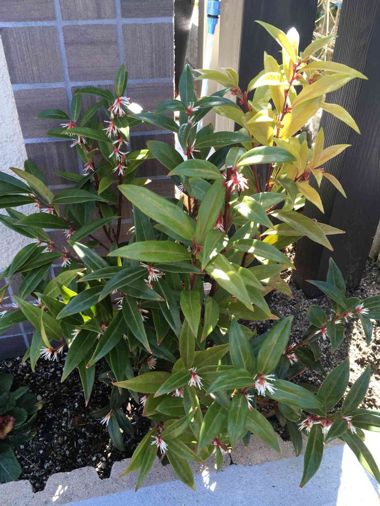 サルココッカ。小さい白いお花?からすっごいいい匂い♪ちょっと金木犀に似たような香りの印象♪気分上がるなー(*´꒳`*)