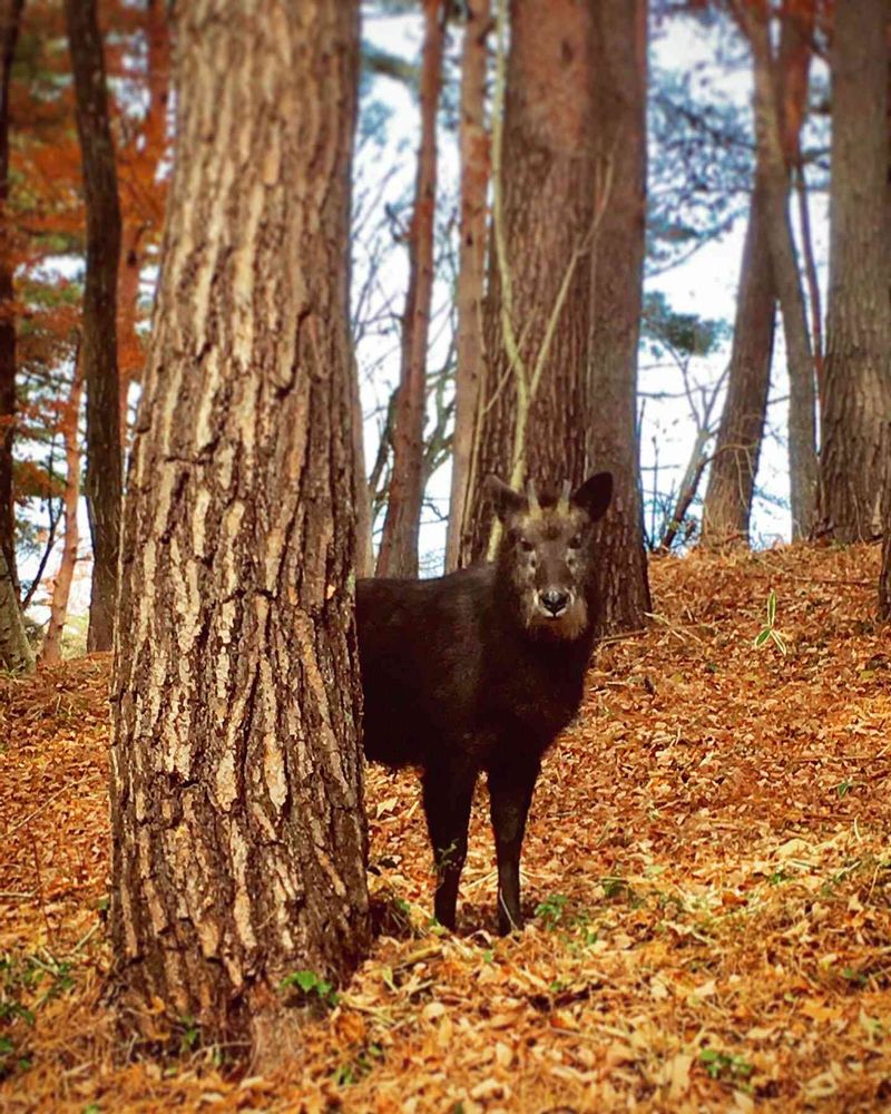 はじめまして✨奈良では🦌によく会いましたが、御在所岳で見たニホンカモシカは野生ではないですし…💦実際に会ったら驚きますね👀‼️でも、羨ましいです😊友好的なお顔されてます💓程よい距離感で😂紅葉の季節に、素敵なpic有り難うございます🍁🍂
