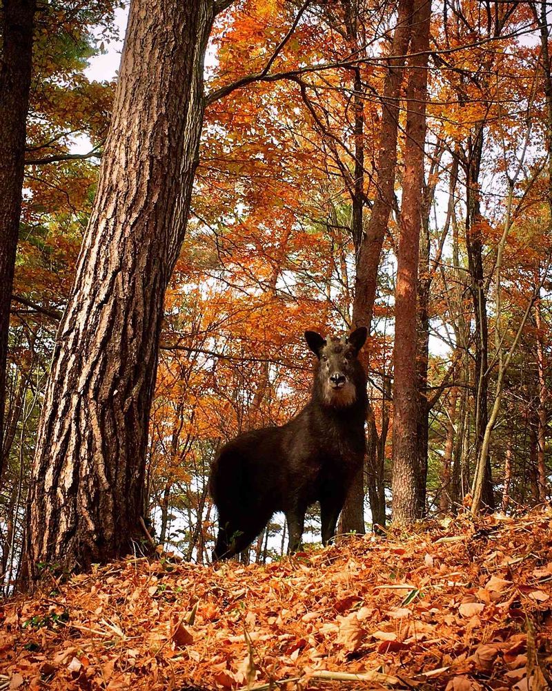 どうせ逃げないんなら、もっと近寄ってやろうと思うのですが、足が前に出ません!😂💦 大人しいとはいえ、野生動物!これ以上近づいてはいけない‼︎と僕の本能がそう言っているようです😓 とりあえずリラックスしよう、そんで、それが相手に分かるようにしようと思ったんですが、同時に寝転がれば、後ろの紅葉や赤松が写せるんじゃないかと❣️😳 我ながらナイスアイデア💡😂 まぁ一応、狙い通りに撮れたかな?😅👍 更に欲が出るもので、もうちょっといいロケーションで撮れるんじゃないかと…いろいろ試してみることにしました😊✨ 明日以降またアップいたします。よろしかったら、またお付き合いください🙇♂️💕💕