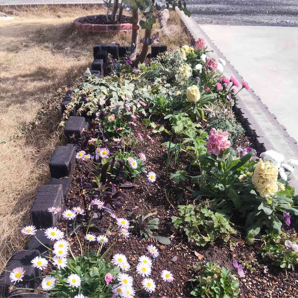 相変わらず迷走している花壇ですが、少しずつ春めいてきました。