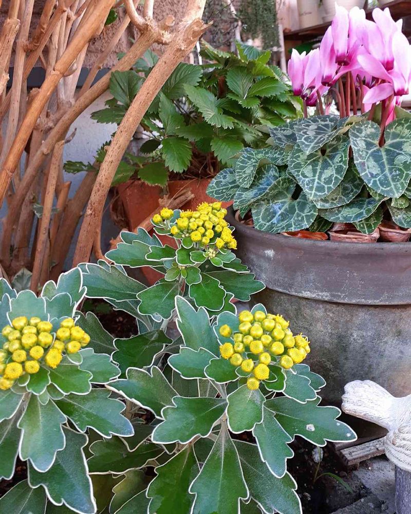 白い縁取りされたようなリーフと小さな黄色い花が素敵ですよね。