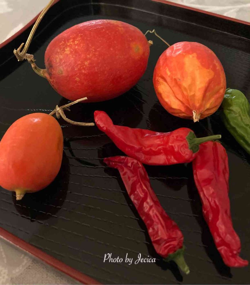 真っ赤なシシトウ,熟れたカラスウリ,夫が育てたシシトウの投稿画像