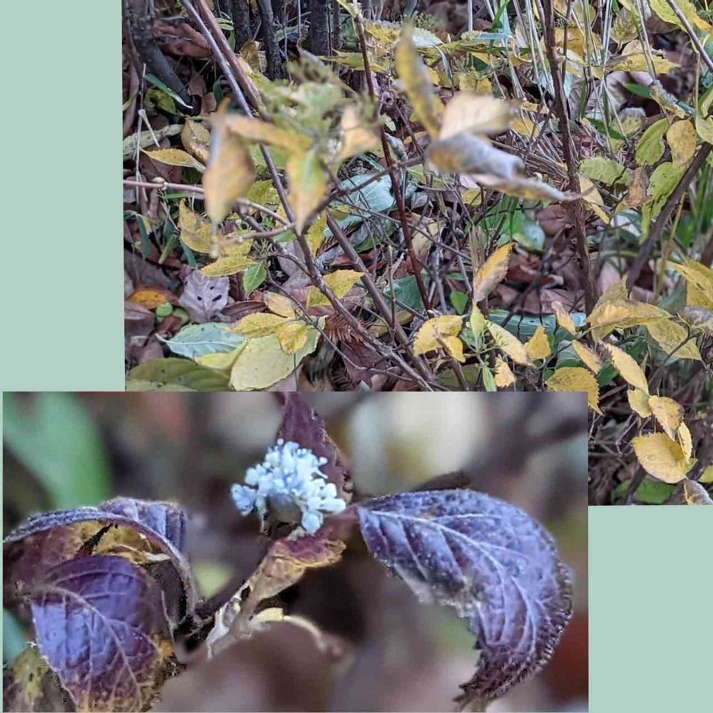 斜面の奥多摩小紫陽花の小さな返り花も、お洒落な装い…。